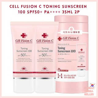 Cell fusion c spf50 pa toning sunscreen 100 s 2pc c brighten the skin instantly.