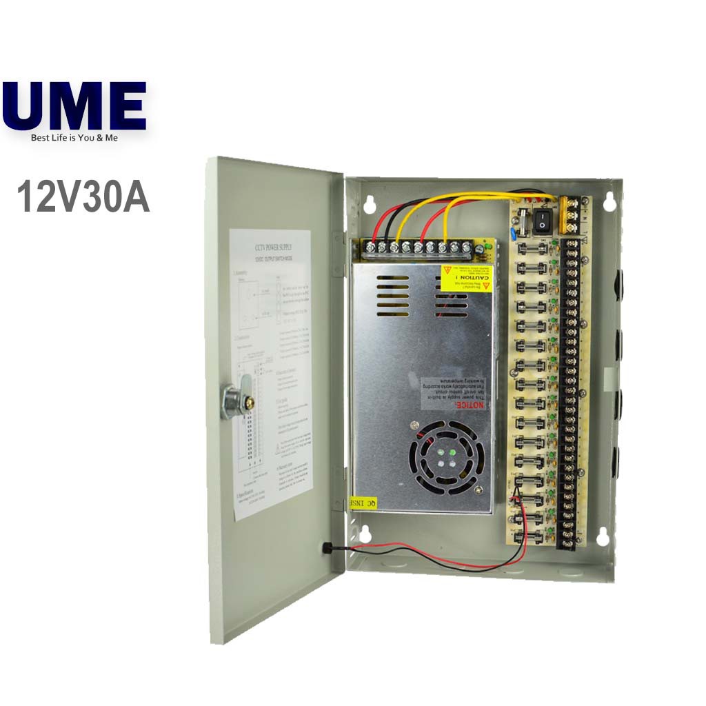This is a centralized 12vdc and 10a power supply with individual terminals for connecting up to 18 cameras.